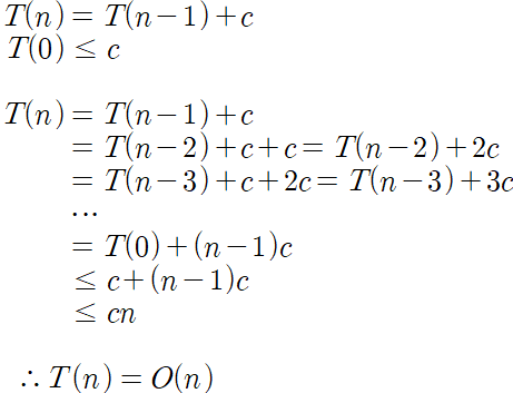문제의 크기가 절반으로 줄어든다는 점에 주목하여 n = 2k, k = log2n 으로 가정하고 순환을 모두 마쳤을때의 표현을 k 로 하자. 참고로 n 을 2k 로 가정하는것은 단조증가함수라고 하여 점근적 복잡도를 구현하는데 전혀 지장을 주지 않는다고 한다.