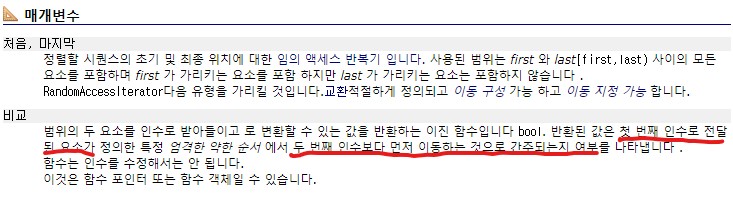 c++ algorithm 라이브러리 sort 함수의 비교함수