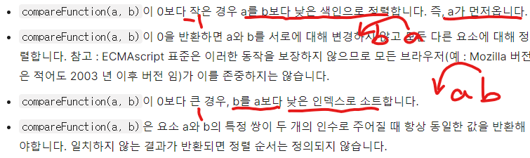 javascript array 객체 sort 메소드의 비교함수